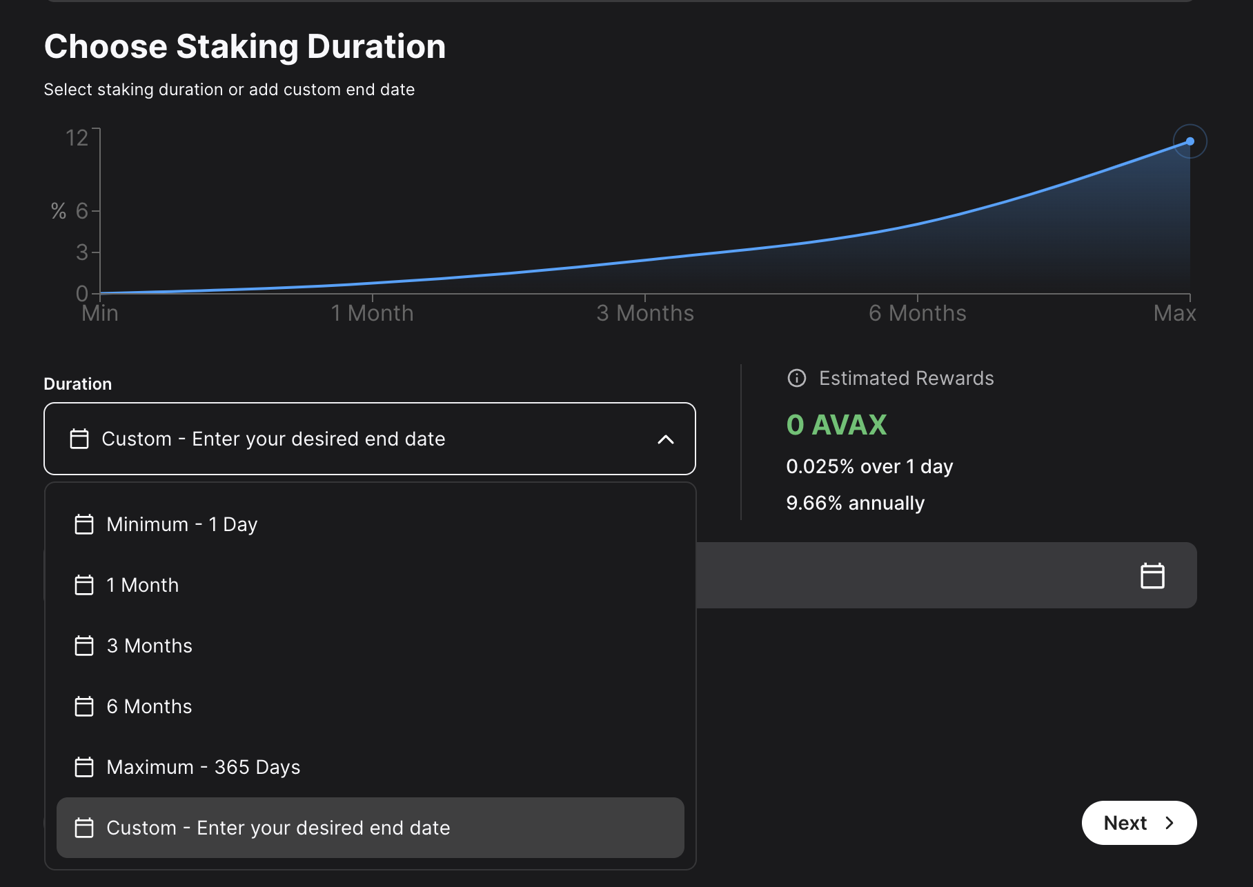 ); } ``` ## Cross-Chain Operations JSON-RPC accounts support cross-chain operations through the Avalanche Client SDK: ```typescript // P-Chain export transaction const pChainExportTxn = await walletClient.pChain.prepareExportTxn({ destinationChain: "C", fromAddress: address, exportedOutput: { addresses: [address], amount: avaxToWei(0.001), }, }); const txHash = await walletClient.sendXPTransaction(pChainExportTxn); ``` ## Best Practices ### 1. Check Provider Availability ```typescript // Always check if the provider is available if (typeof window !== "undefined" && window.avalanche) { // Core is available } else if (typeof window !== "undefined" && window.ethereum) { // MetaMask is available } else { // No wallet provider found } ``` ### 2. Handle Network Switching ```typescript // Check if wallet is on the correct network const currentChainId = await walletClient.getChainId(); if (currentChainId !== avalanche.id) { await walletClient.switchChain({ id: avalanche.id }); } ``` ### 3. Graceful Error Handling ```typescript const handleWalletError = (error: any) => { switch (error.code) { case 4001: return "User rejected the request"; case -32002: return "Request already pending"; case -32602: return "Invalid parameters"; default: return error.message || "Unknown error occurred"; } }; ``` ## Troubleshooting ### Common Issues **Provider Not Found** ```typescript // Check if provider exists if (!window.avalanche && !window.ethereum) { throw new Error("No wallet provider found. Please install Core or MetaMask."); } ``` **Wrong Network** ```typescript // Ensure wallet is on the correct network const chainId = await walletClient.getChainId(); if (chainId !== avalanche.id) { await walletClient.switchChain({ id: avalanche.id }); } ``` **User Rejection** ```typescript try { await walletClient.send({ to: address, amount: 0.001 }); } catch (error) { if (error.code === 4001) { console.log("User rejected transaction"); } } ``` ## Next Steps - **[Local Accounts](accounts/local)** - Learn about local account management - **[Wallet Operations](methods/wallet-methods/wallet)** - Learn how to send transactions - **[Cross-Chain Transfers](methods/wallet-methods/wallet#cross-chain-transfers)** - Moving assets between chains # API Methods (/docs/tooling/avalanche-sdk/client/methods/public-methods/api) --- title: API Methods description: Complete reference for Admin, Info, Health, Index, and ProposerVM API methods --- ## Overview The Avalanche Client SDK provides access to node-level API methods through specialized API clients. These include administrative operations, informational queries, health monitoring, indexed blockchain data access, and ProposerVM operations. ## Admin API Client Provides administrative operations for managing node aliases, logging, and profiling. **Access:** `client.admin` ### alias Assign an API endpoint an alias. **Function Signature:** ```typescript function alias(params: AliasParameters): Promise; interface AliasParameters { endpoint: string; alias: string; } ``` **Parameters:** | Name | Type | Required | Description | | ---------- | -------- | -------- | ---------------------- | | `endpoint` | `string` | Yes | API endpoint to alias | | `alias` | `string` | Yes | Alias for the endpoint | **Returns:** | Type | Description | | --------------- | --------------- | | `Promise` | No return value | **Example:** ```typescript import { createAvalancheClient } from "@avalanche-sdk/client"; import { avalanche } from "@avalanche-sdk/client/chains"; const client = createAvalancheClient({ chain: avalanche, transport: { type: "http" }, }); await client.admin.alias({ endpoint: "bc/X", alias: "myAlias", }); ``` **Related:** - [API Reference](https://build.avax.network/docs/api-reference/admin-api#adminalias) --- ### aliasChain Give a blockchain an alias. **Function Signature:** ```typescript function aliasChain(params: AliasChainParameters): Promise; interface AliasChainParameters { chain: string; alias: string; } ``` **Parameters:** | Name | Type | Required | Description | | ------- | -------- | -------- | ------------------------ | | `chain` | `string` | Yes | Blockchain ID to alias | | `alias` | `string` | Yes | Alias for the blockchain | **Returns:** | Type | Description | | --------------- | --------------- | | `Promise` | No return value | **Example:** ```typescript await client.admin.aliasChain({ chain: "sV6o671RtkGBcno1FiaDbVcFv2sG5aVXMZYzKdP4VQAWmJQnM", alias: "myBlockchainAlias", }); ``` **Related:** - [API Reference](https://build.avax.network/docs/api-reference/admin-api#adminaliaschain) --- ### getChainAliases Get the aliases of a chain. **Function Signature:** ```typescript function getChainAliases(params: GetChainAliasesParameters): Promise; interface GetChainAliasesParameters { chain: string; } ``` **Parameters:** | Name | Type | Required | Description | | ------- | -------- | -------- | ---------------------- | | `chain` | `string` | Yes | Blockchain ID to query | **Returns:** | Type | Description | | ------------------- | ------------------------------ | | `Promise` | Array of aliases for the chain | **Example:** ```typescript const aliases = await client.admin.getChainAliases({ chain: "sV6o671RtkGBcno1FiaDbVcFv2sG5aVXMZYzKdP4VQAWmJQnM", }); console.log("Chain aliases:", aliases); ``` **Related:** - [API Reference](https://build.avax.network/docs/api-reference/admin-api#admingetchainaliases) --- ### Additional Admin API Methods - **getLoggerLevel** - Get log and display levels of loggers - **setLoggerLevel** - Set log and display levels of loggers - **loadVMs** - Dynamically loads virtual machines - **lockProfile** - Writes mutex statistics to `lock.profile` - **memoryProfile** - Writes memory profile to `mem.profile` - **startCPUProfiler** - Start CPU profiling - **stopCPUProfiler** - Stop CPU profiler See the [Admin API documentation](clients/api-clients#admin-api-client) for complete details. --- ## Info API Client Provides node information and network statistics. **Access:** `cli