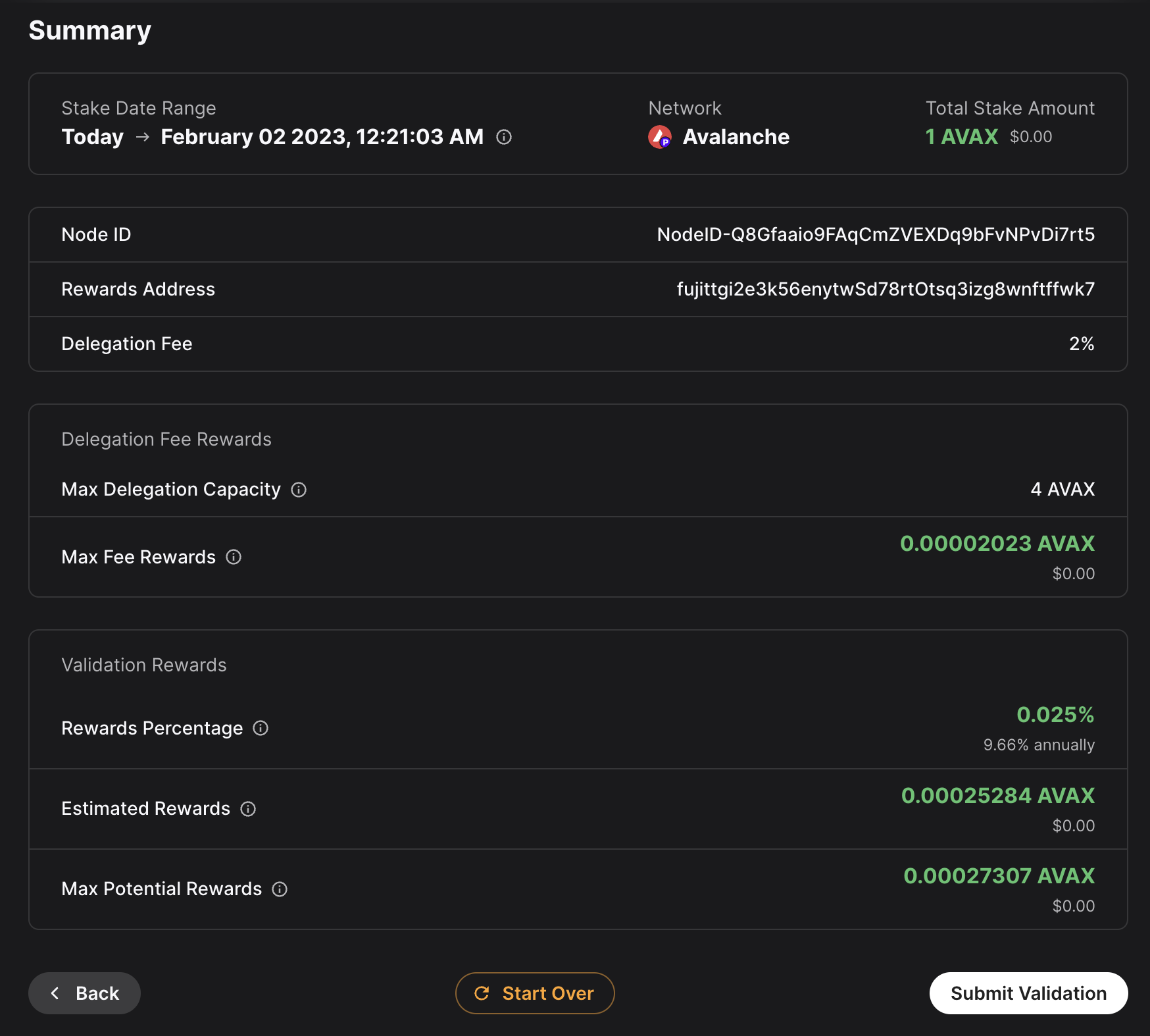 ``` ## Verify the Deployment Once the `CrossChainVRFConsumer` contract is deployed, verify the contract’s address and confirm that it has been successfully deployed on your L1 using a block explorer. # Create Chainlink VRF Subscription (/academy/avalanche-l1/interchain-messaging/13-access-chainlink-vrf-services/07-create-vrf-subscription) --- title: Create Chainlink VRF Subscription description: Learn how to create a Chainlink VRF subscription to enable cross-chain randomness requests. updated: 2024-10-21 authors: [0xstt] icon: BookOpen --- import { Step, Steps } from 'fumadocs-ui/components/steps'; Before you can request random words using Chainlink VRF, you need to set up a **Chainlink VRF subscription**. This subscription allows you to fund requests for randomness and manage the list of consumers that are authorized to use the VRF service. ## Access Chainlink's VRF Subscription Manager To create a subscription, go to the Chainlink VRF Subscription Manager on the network where you plan to request VRF (e.g., Avalanche Fuji). You can access the manager here: [VRF | Subscription Management for Fuji](https://vrf.chain.link/fuji). ![](/common-images/chainlink-vrf/visit-subscription-management.png) ## Create a New Subscription Once on the subscription manager, create a new subscription. The subscription will have a unique ID, which you'll need to reference in your `CrossChainVRFWrapper` contract. This ID is used to track your random word requests and the balance associated with them. ![](/common-images/chainlink-vrf/create-subscription.png) ## Fund the Subscription After creating the subscription, you need to fund it with LINK tokens. These tokens are used to pay for the randomness requests made through Chainlink VRF. Make sure your subscription has enough funds to cover your requests. You can get testnet LINK tokens from the Fuji Faucet: [Chainlink Faucet for Fuji](https://faucets.chain.link/fuji) ![](/common-images/chainlink-vrf/faucet.png) ![](/common-images/chainlink-vrf/add-funds.png) ## Add Consumers After funding your subscription, add the `CrossChainVRFWrapper` contract `($VRF_WRAPPER)` as a consumer. This step authorizes the contract to make randomness requests on behalf of your subscription. You can add other consumers, such as other contracts or addresses, depending on your use case. ![](/common-images/chainlink-vrf/add-consumer.png) ## Save Subscription ID After completing these steps, save your subscription ID. You will need this ID when configuring the `CrossChainVRFWrapper` contract to request random words. ```bash export VRF_SUBSCRIPTION_ID= ``` --- # Request Random Words (/academy/avalanche-l1/interchain-messaging/13-access-chainlink-vrf-services/08-request-random-words) --- title: Request Random Words description: Learn how to request random words using CrossChainVRFConsumer. updated: 2024-10-21 authors: [0xstt] icon: Terminal --- import { Step, Steps } from 'fumadocs-ui/components/steps'; In this section, you will learn how to request random words from Chainlink VRF using both the `CrossChainVRFConsumer` contracts. ## Authorize an Address to Request Random Words After deploying the `CrossChainVRFWrapper` contract, the first step is to authorize an address to make requests for random words. This ensures that only specific addresses linked to a subscription can request VRF. - Use the `addAuthorizedAddress` function to authorize a specific address with a given subscription ID. This step allows the address to make random word requests through the wrapper. ```bash cast send --rpc-url --private-key $VRF_WRAPPER "addAuthorizedAddress(address caller, uint256 subscriptionId)" $VRF_CONSUMER $VRF_SUBSCRIPTION_ID ``` ## Request Random Words from `CrossChainVRFConsumer` Once the address is authorized, the next step is to send a request for random words from the `CrossChainVRFConsumer` contract on the unsupported L1. This request is then sent to the `CrossChainVRFWrapper` via a cross-chain message. ```bash cast send --rpc-url --private-key $VRF_CONSUMER "requestRandomWords(bytes32 keyHash, uint16 requestConfirmations, uint32 callbackGasLimit, uint32 numWords, bool nativePayment, uint32 requiredGasLimit)" ``` Replace the placeholders with: - ``: The VRF key hash used for random word generation. - ``: Number of confirmations required for the request. - ``: The gas limit for the VRF callback function. - ``: The number of random words requested. - ``: Indicates whether the payment will be made in the native token. - ``: The gas limit required for the cross-chain message to be processed. # P-Chain (/academy/avalanche-l1/permissioned-l1s/01-introduction/01-pchain-review) --- title: P-Chain description: A review of the Platform Chain. updated: 2025-03-13 authors: [nicolasarnedo] icon: Book --- import { Callout } from 'fumadocs-ui/components/callout'; ## Validators in a Multi-Chain Network Validators are nodes of a blockchain that secure the network by validating the transactions. Each L1 in the Avalanche network has it's own set of validators that is running the `AvalancheGo` client. ![multi-chain-architecture](https://qizat5l3bwvomkny.public.blob.vercel-storage.com/l1s.png) All validators are registered on the P-Chain with a unique node ID, public key, and stake weight, mapped to the blockchain they are validating. ![P-Chain Ledger View](https://qizat5l3bwvomkny.public.blob.vercel-storage.com/PchainLedger.png) ## Platform Chain (P-Chain) The Platform Chain is the backbone for the native interoperability of the Avalanche network. It is a registry of all validators in the Avalanche network. This includes the validators of the Primary Network (including the X-, C- and P-Chain), as well as all L1s and legacy Subnet validators. The following graphic shows a simplified data model of the P-Chain: P-Chain Architecture Builders can create new L1 blockchains in the Avalanche Network by issuing transactions on the P-Chain. The P-Chain runs a special-purpose virtual machine called the [platformvm](http