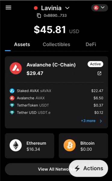 ``` ## Layout Structure The component uses a flex layout with: - Left side: TokenChip (icon, name, and symbol) - Right side (if balance provided): - Token balance (3 decimal places) - USD value (currently hardcoded to $0) - Proper spacing and alignment - Optional hover and click interactions # TransactionButton (/docs/builderkit/components/transaction/transaction-button) --- title: TransactionButton description: "A button component that handles blockchain transaction submission with built-in status tracking and notifications." --- # TransactionButton The TransactionButton component handles individual transaction submission with built-in status tracking and notifications. ## Usage ```tsx import { TransactionButton } from '@avalabs/builderkit'; // Basic usage // With callbacks { console.log('Transaction sent at:', timestamp); }} onTransactionConfirmed={(receipt) => { console.log('Transaction confirmed:', receipt); }} /> ``` ## Props | Prop | Type | Default | Description | |------|------|---------|-------------| | `chain_id` | `number` | - | Chain ID for the transaction | | `title` | `string` | - | Transaction title | | `description` | `string` | - | Transaction description | | `data` | `any` | - | Transaction data | | `onTransactionSent` | `(timestamp: number) => void` | - | Called when transaction is sent | | `onTransactionConfirmed` | `(receipt: any) => void` | - | Called when transaction is confirmed | | `className` | `string` | - | Additional CSS classes | ## Features - Automatic wallet connection handling - Network switching support - Transaction status tracking - Toast notifications with explorer links - Loading states and error handling ## Examples ### Basic Transaction ```tsx ``` ### With Custom Styling ```tsx ``` ## Component States 1. **Not Connected** - Shows "Connect Wallet" button - Handles wallet connection 2. **Wrong Network** - Shows "Wrong Network" button - Handles network switching 3. **Ready** - Shows transaction button - Enables transaction submission 4. **Processing** - Shows loading indicator - Tracks transaction status ## Notifications The component provides toast notifications for: - Transaction sent - Transaction confirmed - Transaction failed Each notification includes: - Timestamp - Transaction explorer link - Appropriate styling # TransactionManager (/docs/builderkit/components/transaction/transaction-manager) --- title: TransactionManager description: "A component that orchestrates multiple blockchain transactions in sequence." --- # TransactionManager The TransactionManager component orchestrates multiple blockchain transactions in sequence, handling the flow between steps and providing status tracking. ## Usage ```tsx import { TransactionManager } from '@avalabs/builderkit'; // Basic usage { console.log('Step completed at:', timestamp); }} onTransactionConfirmed={(receipt) => { console.log('All transactions completed:', receipt); }} /> ``` ## Props | Prop | Type | Default | Description | |------|------|---------|-------------| | `chain_id` | `number` | - | Chain ID for the transactions | | `transactions` | `TransactionProps[]` | - | Array of transactions to process | | `onTransactionSent` | `(timestamp: number) => void` | - | Called when a step completes | | `onTransactionConfirmed` | `(receipt: any) => void` | - | Called when all transactions complete | | `className` | `string` | - | Additional CSS classes | ## Features - Sequential transaction execution - Step-by-step progress tracking - Automatic state management - Transaction dependency handling - Consistent error handling - Status notifications for each step ## Examples ### Token Approval and Transfer ```tsx ``` ### Multi-step Protocol Interaction ```tsx ``` ## Transaction Flow 1. **Initialization** - Validates transaction array - Sets up initial state - Prepares first transaction 2. **Step Execution** - Processes current transaction - Waits for confirmation - Updates progress state 3. **Step Transition** - Validates completion - Moves to next transaction - Updates UI state 4. **Completion** - Confirms all steps finished - Triggers completion callback - Resets internal state # debug_getRawBlock (/docs/rpcs/c-chain/debug/debug_getRawBlock) --- title: debug_getRawBlock full: true _openapi: method: POST route: /ext/bc/C/rpc#debug_getRawBlock toc: [] structuredData: headings: [] contents: - content: > Returns RLP-encoded bytes of a single block by number or hash. **⚠️ Note:** This method is NOT available on public RPC endpoints. You must run your own node or use a dedicated node service to access debug methods. --- {/* This file was generated by Fumadocs. Do not edit this file directly. Any changes should be made by running the generation command again. */} Returns RLP-encoded bytes of a single block by number or hash. **⚠️ Note:** This method is NOT available on public RPC endpoints. You must run your own node or use a dedicated node service to access debug methods. # debug_getRawTransaction (/docs/rpcs/c-chain/debug/debug_getRawTransaction) --- title: debug_getRawTransaction full: true _openapi: method: POST route: /ext/bc/C/rpc#debug_getRawTransaction toc: [] structuredData: headings: [] contents: - content: > Returns the bytes of the transaction for the given hash. **⚠️ Note:** This method is NOT available on public RPC endpoints. You must run your own node or use a dedicated node service to access debug methods. --- {/* This file was generated by Fumadocs. Do not edit this file directly. Any changes should be made by running the generation command again. */} Returns the bytes of the transaction for the given hash. **⚠️ Note:** This method is NOT available on public RPC endpoints. You must run your own node or use a dedicated node service to access debug methods. # avax.getAtomicTx (/docs/rpcs/c-chain/avalanche/avax_getAtomicTx) --- title: avax.getAtomicTx full: true _openapi: method: POST route: /ext/bc/C/avax#avax.getAtomicTx toc: [] structuredData: headings: [] contents: - content: Ret